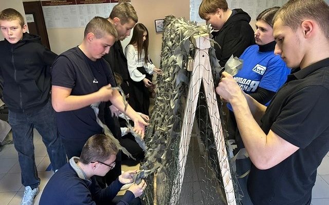 В день рождения «Единой России» активисты «Молодой Гвардии» и секретарь Тацинского местного отделения партии Людмила Цеценко организовали мастер-класс по плетению маскировочных сетей для учащихся Тацинской №2 и Ермаковской школ.