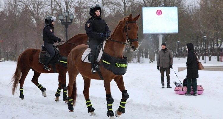 В связи с этим сотрудники полиции приняли нестандартное решение — для патрулирования отдельных участков города были задействованы конные наряды. В условиях, где проезд служебных автомобилей затруднён, охрану общественного порядка обеспечивает кавалерийский взвод отдельной роты 9-го полка патрульно-постовой службы полиции УМВД России по городу Ростову-на-Дону.
