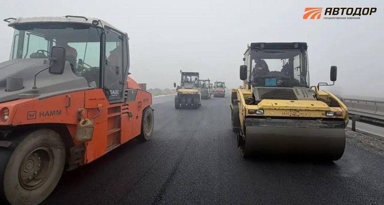 Параллельно дорожники продолжают устройство покрытия: на участке протяжённостью 23 километра уже выполнена укладка дорожной одежды на всю проектную ширину — шесть полос движения.