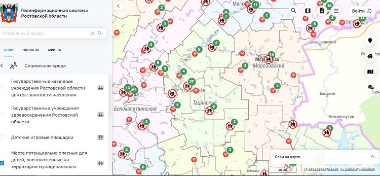 В Ростовской области перед началом школьных каникул обновили специальный слой «Места, потенциально опасные для детей» в региональной геоинформационной системе (ГИС РО). Об этом сообщается на сайте донского правительства со ссылкой на слова министра цифрового развития, ИТ и связи региона Алексея Копытова.