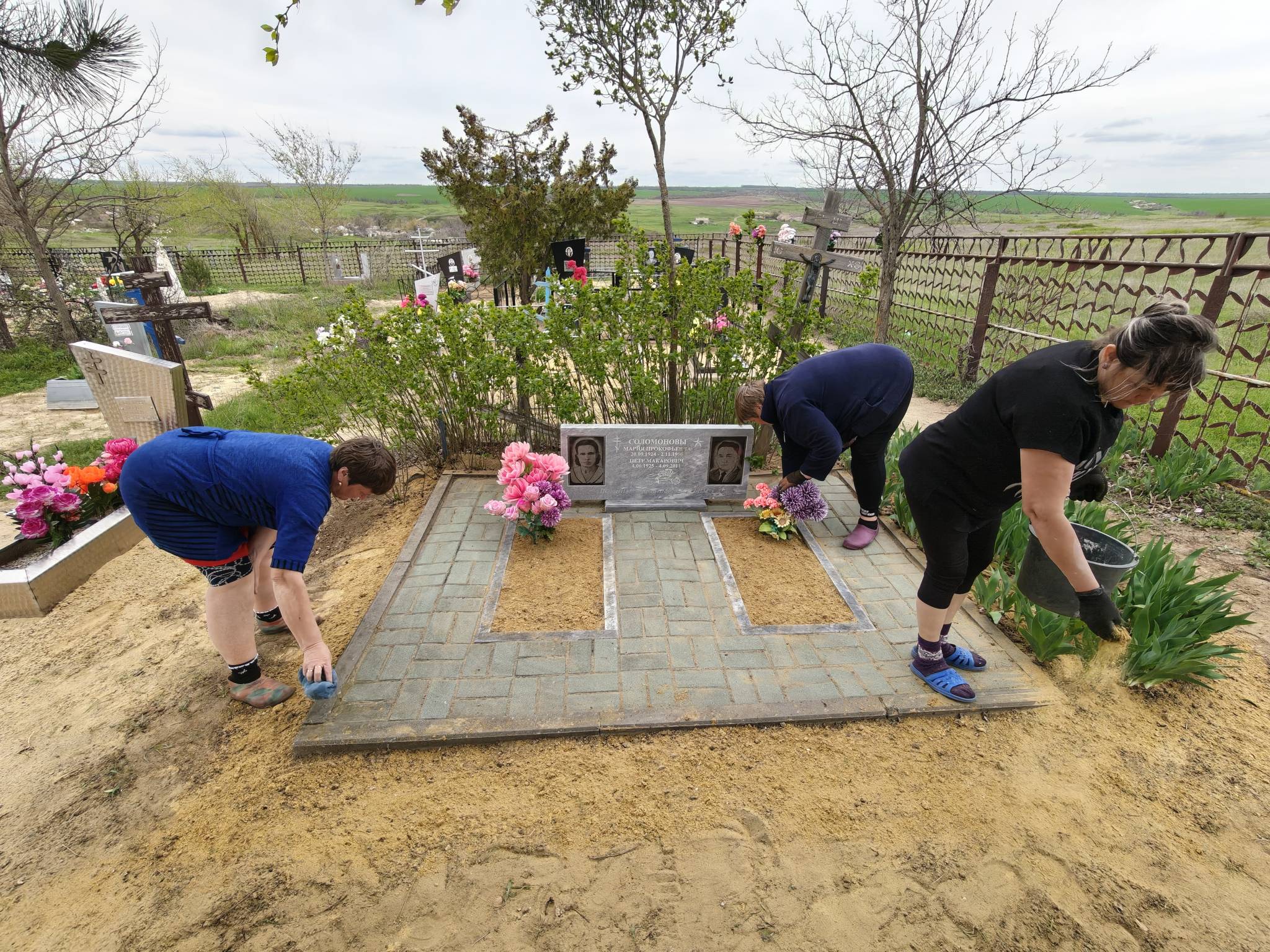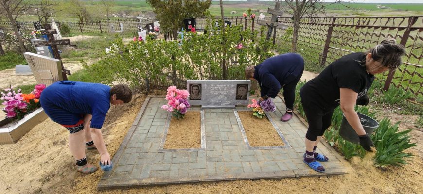 Социальные работники Вера Исаева, Жанна Шандимирова и Светлана Донецкова из ОСО №5 хут. Новороссошанского каждую весну благоустраивают захоронения ветеранов Великой Отечественной войны. Фото предоставлено Центром соцобслуживания