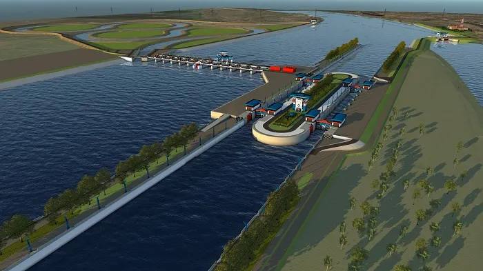 Первый пусковой комплекс гидроузла готовится к сдаче во временную эксплуатацию в IV-м квартале 2025 года. Уже разобраны технологические перемычки для затопления плотины, а затем и судоходного шлюза для того, чтобы провести первое судно.