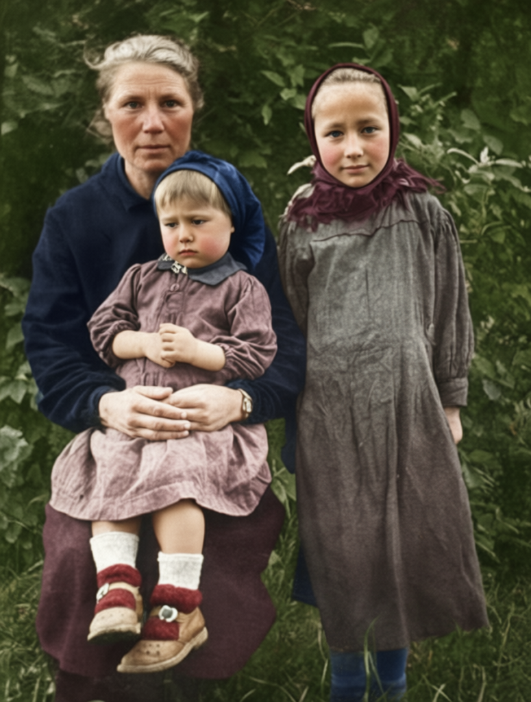 Мария Васильевна Лебедева с маленькими дочерями Фаиной (стоит) и Ритой сфотографировалась перед отъездом на заработки. Фото предоставлено семьёй Репиных.
