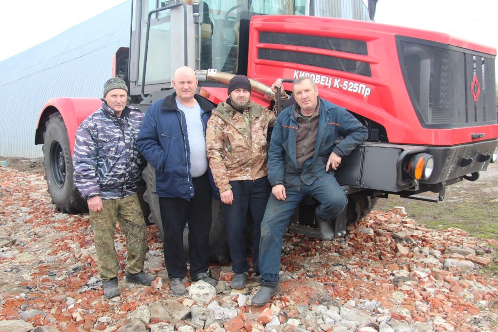 В КФХ Сергея Бильника (второй слева) трудятся местные жители Сергей Морозов, Александр Агеев, крыловчанин Александр Пиркин (слева направо). Каждый – универсал, может управлять любой техникой, имеющейся в арсенале. Фото автора