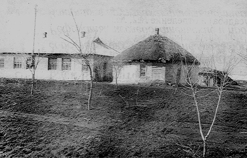 В 1950-60-е годы в совхозе велось активное строительство жилья. Но с новыми двухквартирными домами ещё соседствовали старые хаты, крытые соломой. На снимке дом на отделении №1, где располагался магазин райпо, с другой стороны жила семья Александра и Марии Солошенко. Фото МЦБ