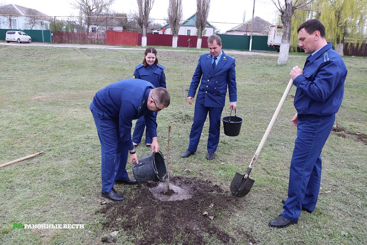 В посадке деревьев также приняли участие первый заместитель главы администрации района Роман Курличенко, коллектив прокуратуры Тацинского района во главе с прокурором Василием Бессмельцевым.