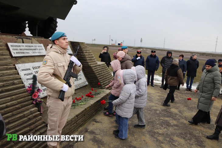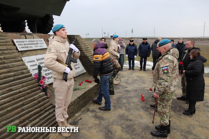 Присутствующие почтили память погибших минутой молчания и возложили цветы к подножию «БТР».